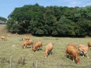 Es gibt schöne braune Kühe. Hier noch auf der Weide. Heute Abend schon auf unserem Grill.