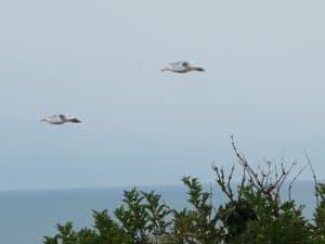Die Möwen schweben im Hangwind der Steilküste vorbei. Man sollte bei diesen hervorragenden Bedingungen hier einen ferngesteuerten Flieger haben. Dabei denken wir an Frank aus HH.