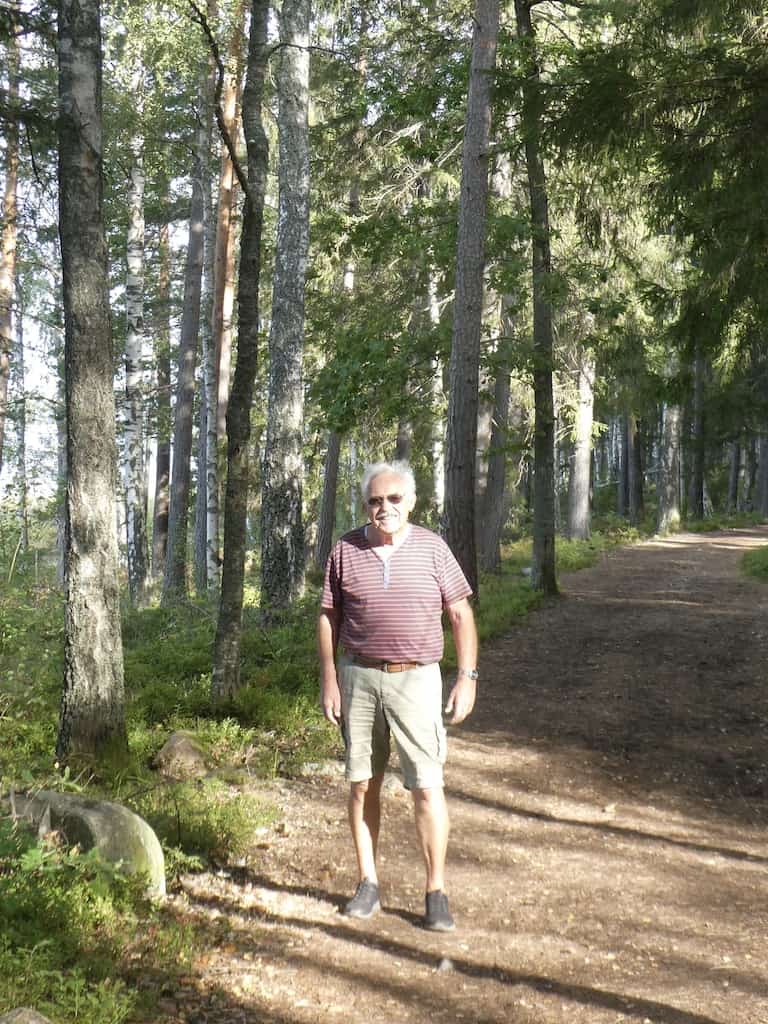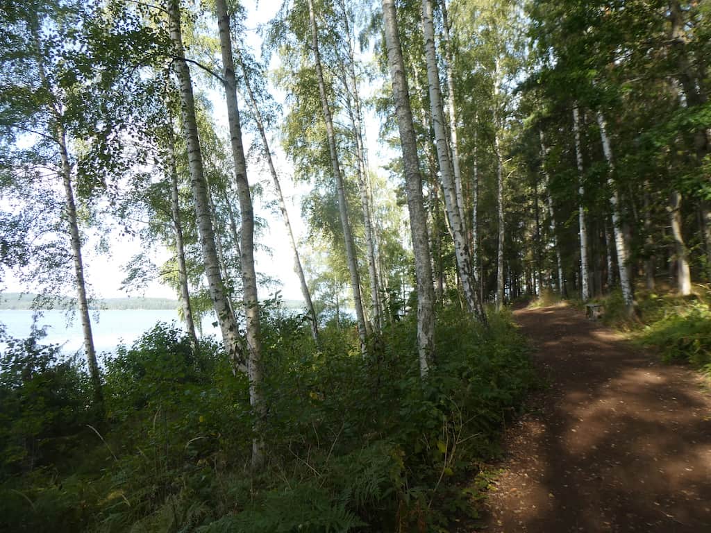 Bevor wir weiterfahren, unternehmen wir noch einen ausgedehnten Waldspaziergang. Der Wanderweg ist weich und federt bei jedem Schritt.