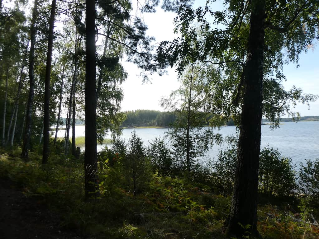 Durch die Bäume sehen wir immer wieder das Wasser.