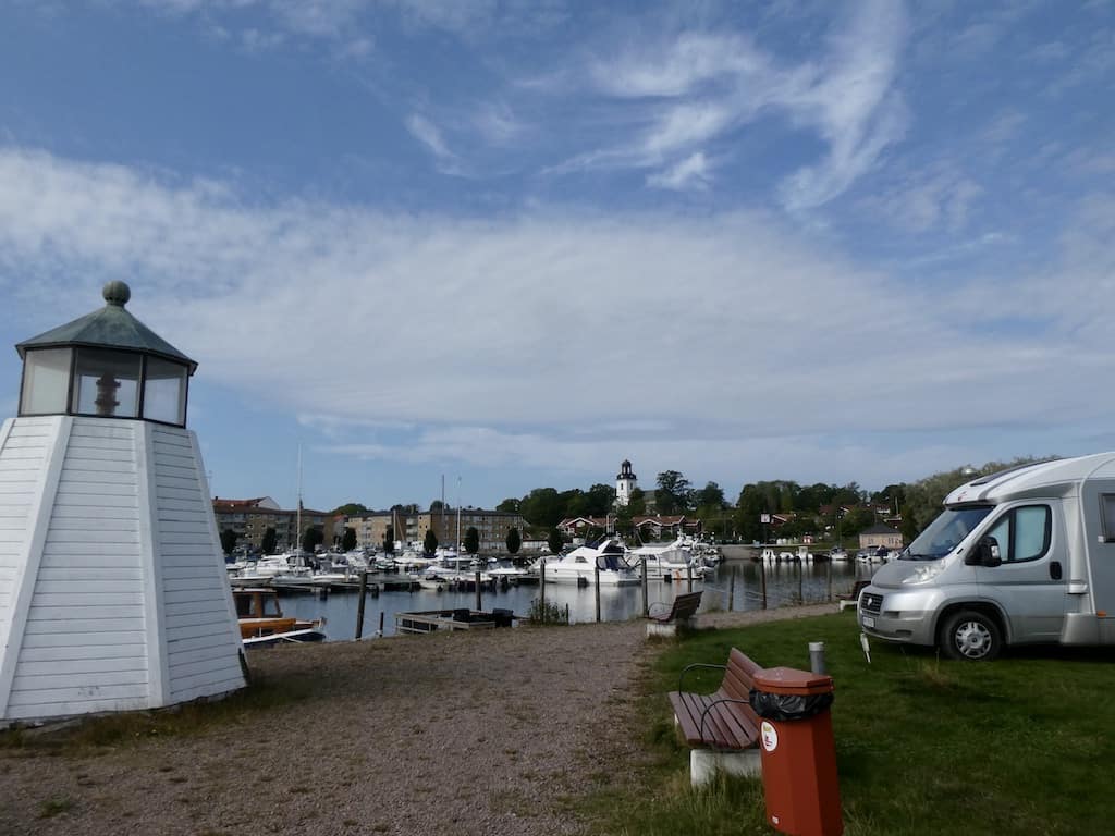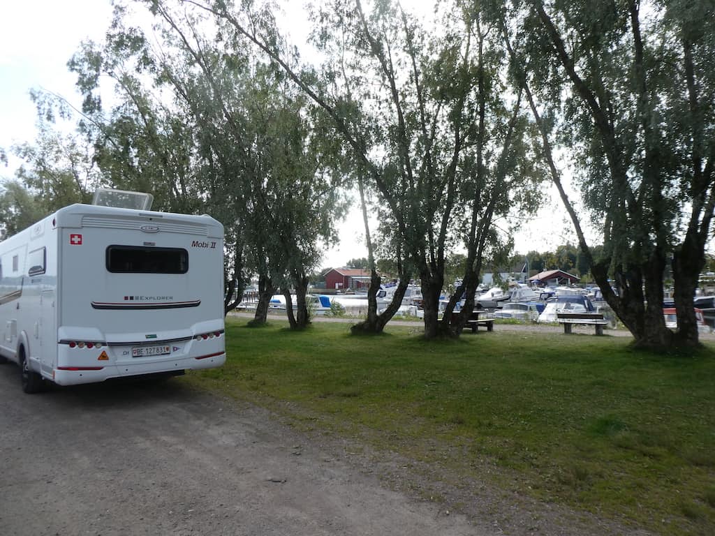 In Åmål auf dem Stellplatz am Hafen machen wir Halt für das Mittagessen. Wir können hier auch Ver- und Entsorgen. Renate gefällt es so gut, dass sie hier gerne zum Übernachten bleiben würde. Michael glaubt immer noch an den besonderen Platz in der Wildnis.
