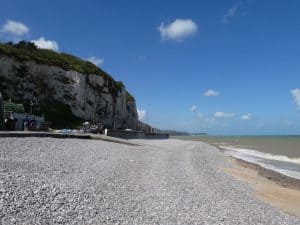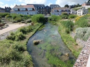Das Flüsschen „Veules“ fliesst hier nach nur knapp 2 km von der Quelle entfernt ins Meer. Michael war heute schon einmal kurz bei der Quelle. Morgen wollen wir gemeinsam hinlaufen, dann zeigen wir auch die Bilder dazu.