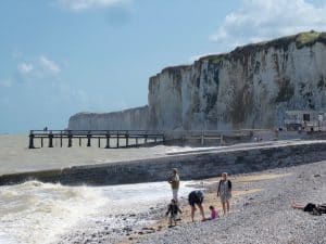 Von da hat man einen tollen Blick auf die Steilküsten und das Meer (Ärmelkanal).