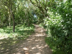 Der Weg zurück zum Stellplatz geht bergan durch ein Wäldchen.