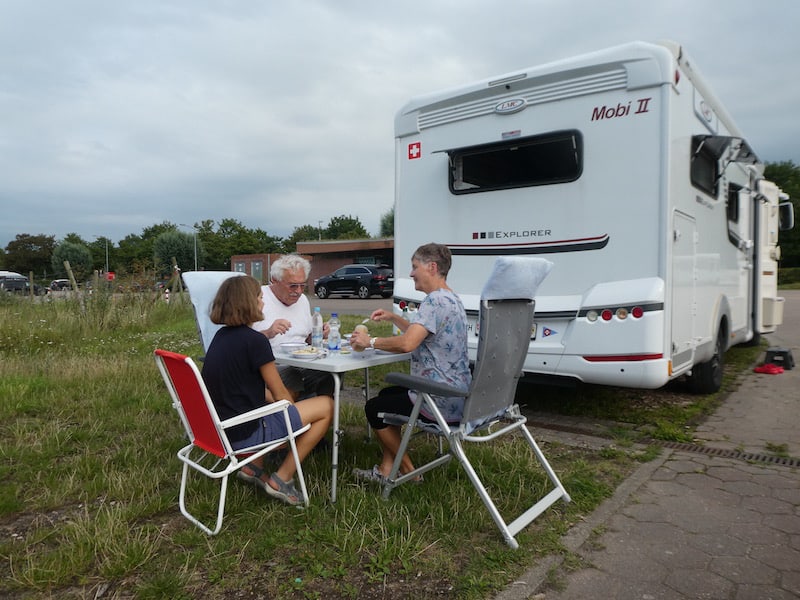 Deshalb fahren wir auf den, heute fast leeren, Stellplatz in Wedel, weil von hier eine S-Bahn zum Bahnhof Hamburg-Altona verkehrt.