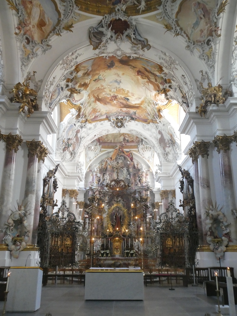 Hier müssen wir natürlich die Klosterkirche besichtigen. Ein gewaltiges Bauwerk, das heute im süddeutchen Rokoko-Stil erscheint. Die ehemals romanische Abteikirche wurde im 15.Jahrhundert im Geschmack der Spätgotik umgebaut.