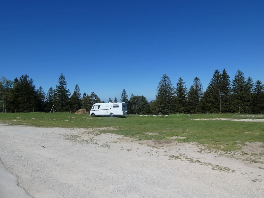 Die meisten Camper sind weitergezogen. Wir stehen morgens fast alleine auf dem riesigen Parkplatz. Das änderte sich aber bald. Mit 9° ist es morgens doch recht frisch hier oben.