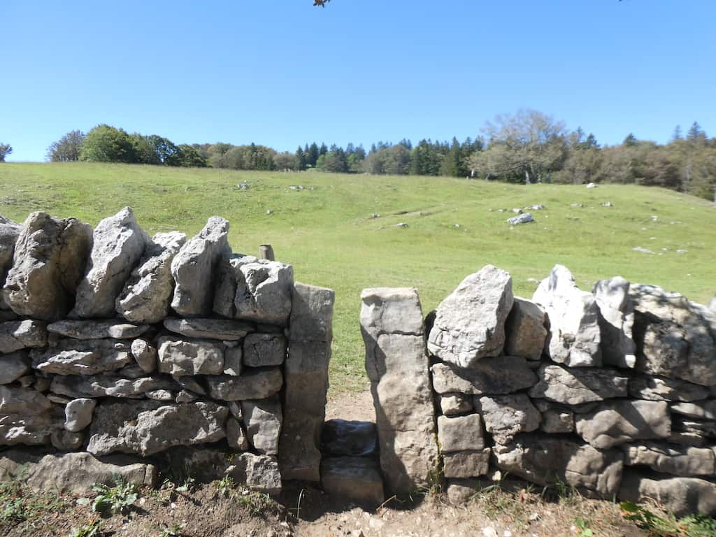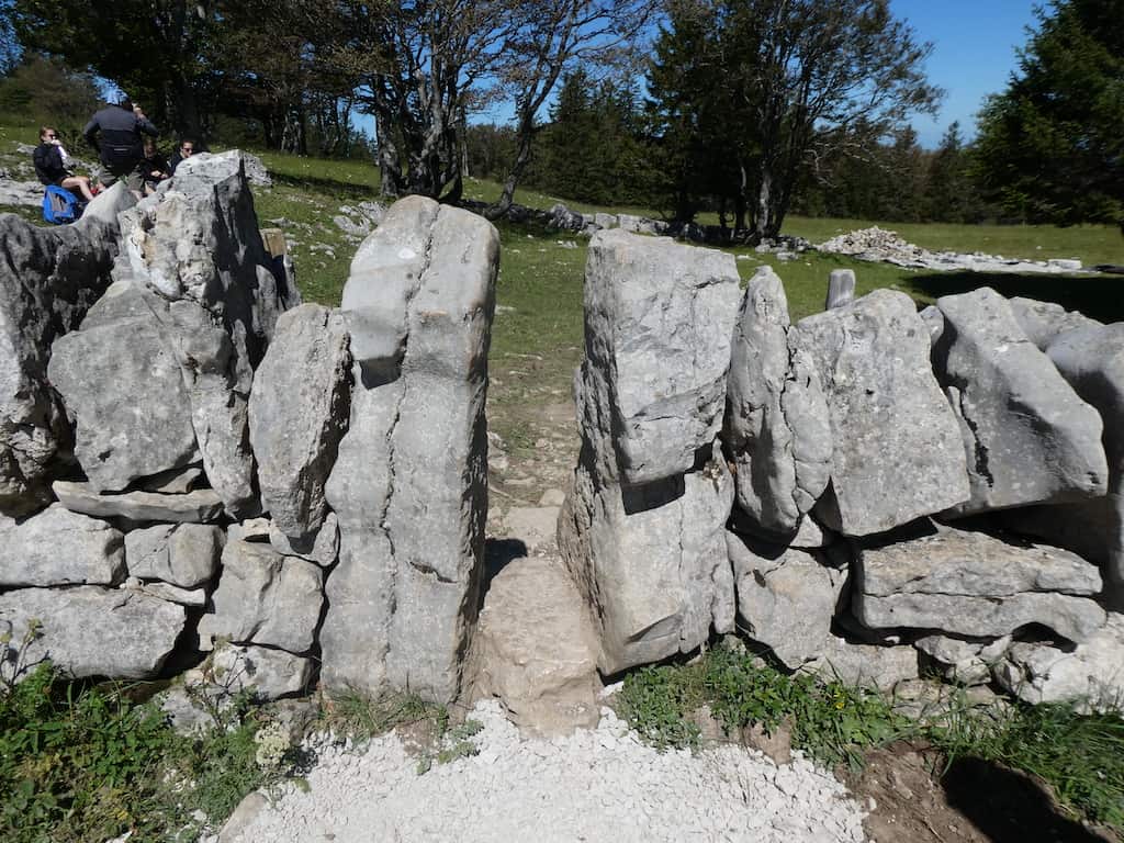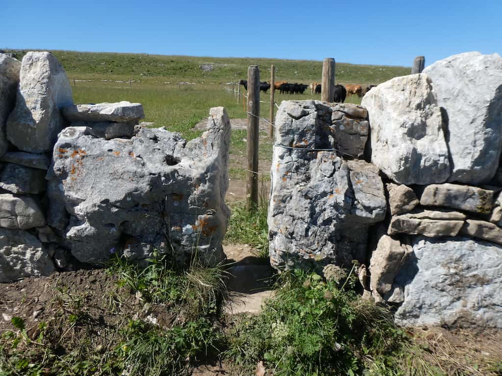 In den Trockenmauern sind in gewissen Abständen sehr schmale Durchgänge, damit das Vieh nicht hindurchkommt. Aber auch einige Besucher haben so ihre Mühe damit.
