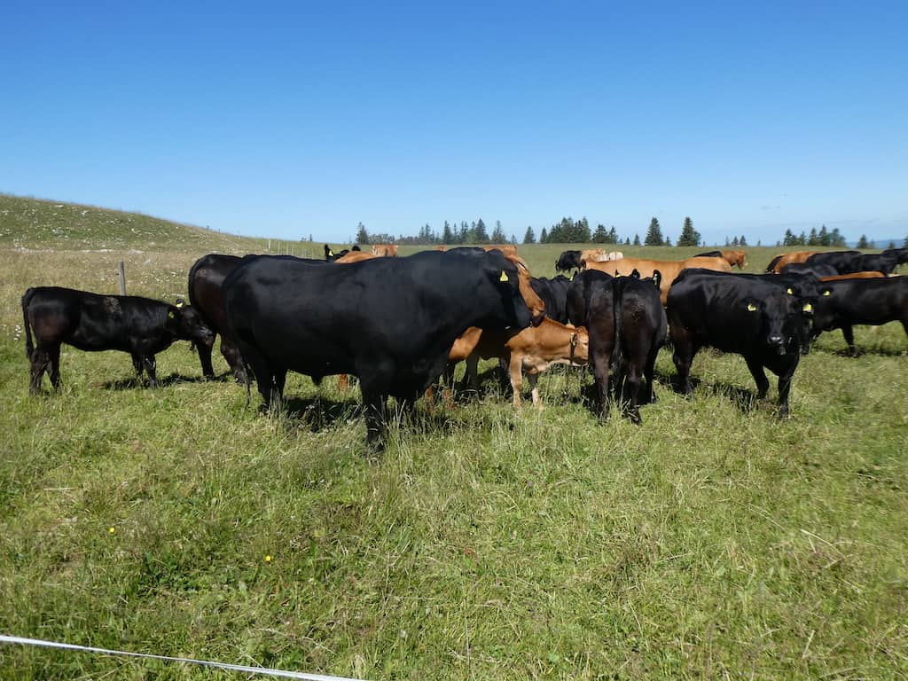 Wir kommen an einer Herde Angus-Rinder vorbei, die hier sehr tierfreundlich leben dürfen.