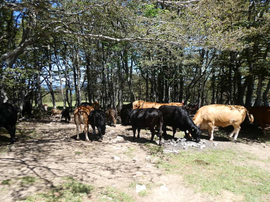Die Angus-Herde hat sich inzwischen auch talwärts in ein schattiges Wäldchen begeben.