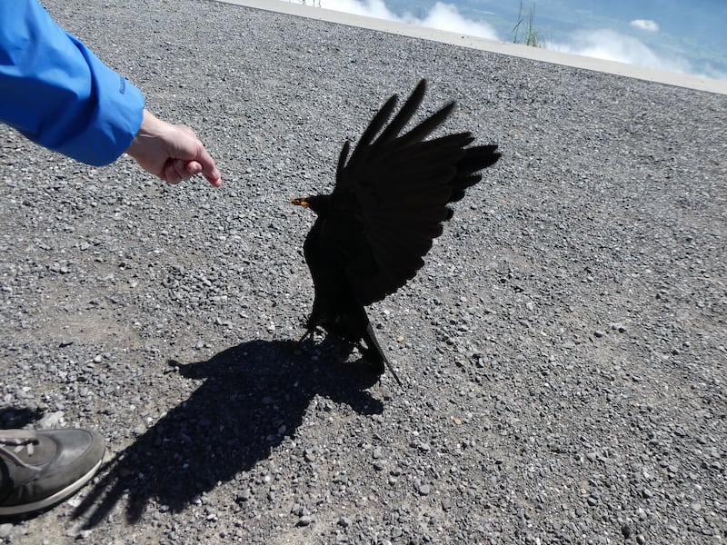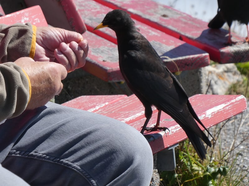 Die Bergdohlen sind so zutraulich, dass sie aus der Hand fressen.