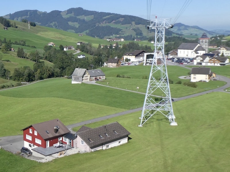 Nach wenigen Kilometern sind wir mit dem Mobi in Brülisau bei der Talstation der Seilbahn. Schon um 10 Uhr sind die Parkplätze rar. Wir werden mit unserem Vehikel auf einen Ausweichplatz verwiesen. Auch der ist bald gefüllt.