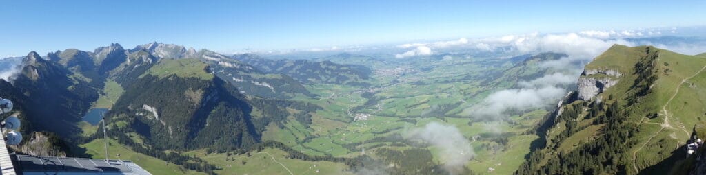 Dienstag: Heute wollen wir wieder hoch hinaus. Die Sonne scheint, also ideales Wetter für «de Chaschte», wie der «Hohe Kasten» im lokalen Dialekt genannt wird. Genau genommen liegt der «Top of Appenzell» auf dem Gebiet des St.Galler Rheintals und ist damit kein Appenzeller Berg mehr. Aber das tut seiner Attraktivität keinen Abbruch.