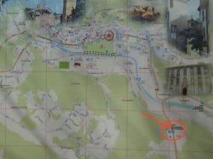 Der Stellplatz liegt etwa 10 Minuten Fussweg ausserhalb des Ortes.