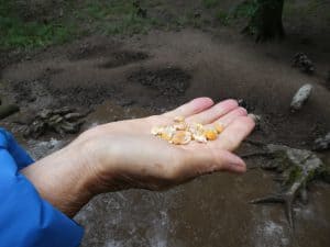 Man darf sie füttern, und sie streiten sich um jedes Maiskorn.