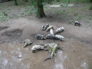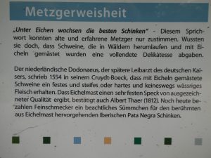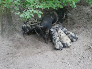 In einem Gehege werden „Turopolje Schweine“,  eine alte Rasse aus Kroatien, gehalten.