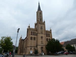 Wir fingen bei der Stadtkirche an. Die ist von 1845 bis 1848 nach Plänen des Architekten Friedrich Wilhelm Buttel entstanden.
