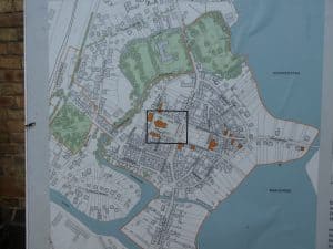 Im Touristenbüro hatten wir uns eine Detailkarte geholt, denn auch hier in der Nähe (eingekreist) gibt es ehemaligen Besitz der Vorfahren Warncke.