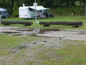Als nach mehreren Potts Kaffee und Sandwichs und Kuchen der Regen nachliess, beeilten wir uns zum Mobi zurückzukommen. Kaum waren wir im Trocknen, als der nächste Schauer kam. Und es war nicht der letzte.