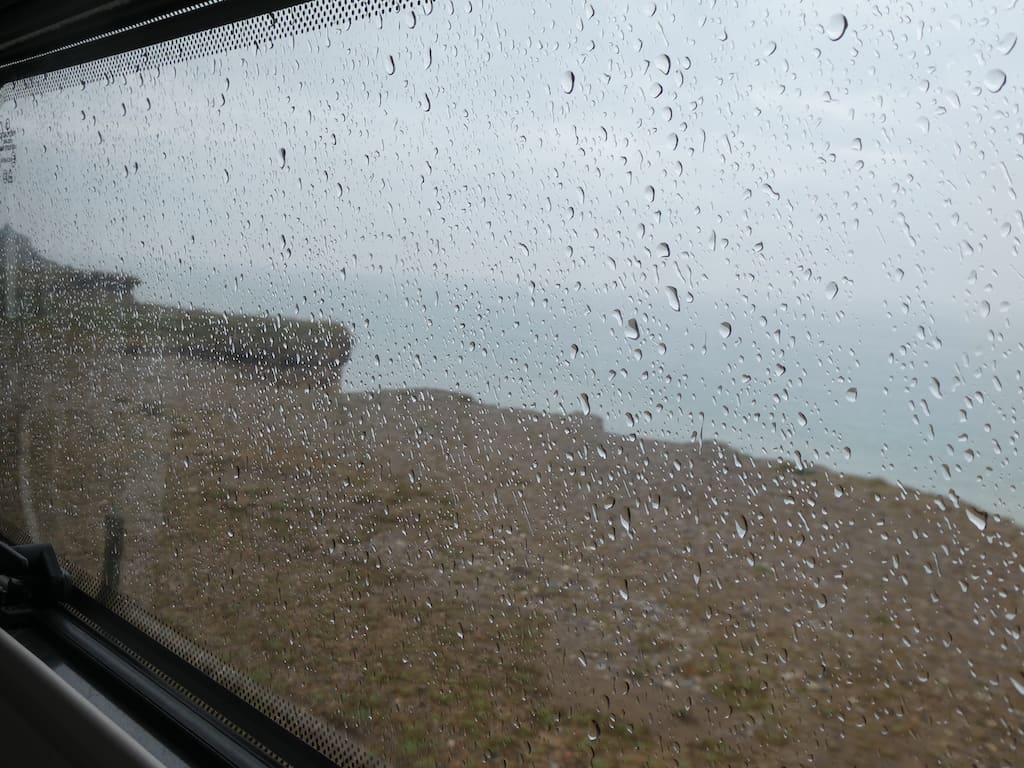 Als wir, wie gewöhnlich, gegen 8 Uhr wach werden, regnet es stark. Michael dreht sich noch einmal um und schläft noch eine Runde.