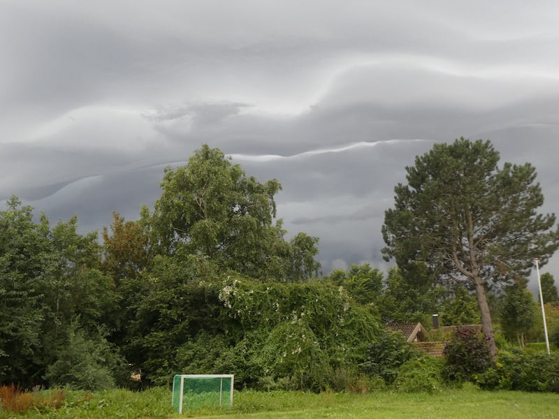 Wir sind gerade mit den Abendessen fertig, da ziehen wieder dunkle Gewitterwolken auf. Wir hören, dass dieses Gewitter in Flensburg (80 km Luftlinie entfernt) ziemlich gewütet hat.