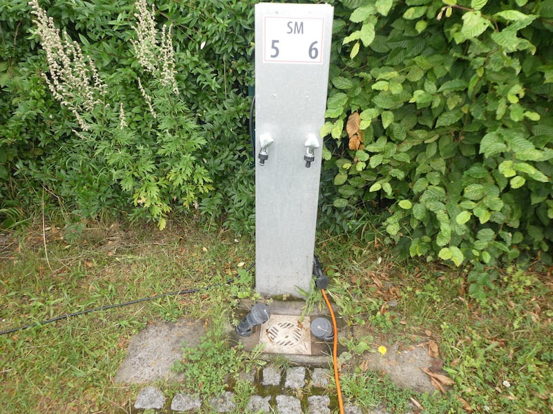 Hier hat jeder Platz einen eigenen Wasseranschluss, einen Grauwasserablass und Strom ist auch inbegriffen. Allerdings hat der Platz auch seinen Preis.