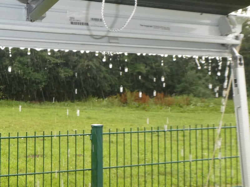 Da man nie weiss, wie sich der Sturm entwickelt, bergen wir sicherheitshalber unsere Markise. Auch Tisch und Stühle verschwinden in der Garage. Es hat uns gerade so gereicht, da fallen auch schon die ersten Tropfen.