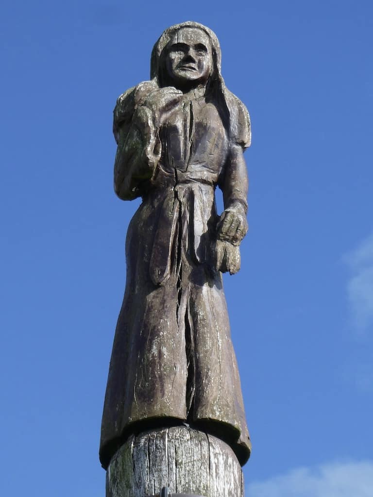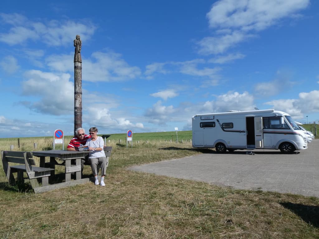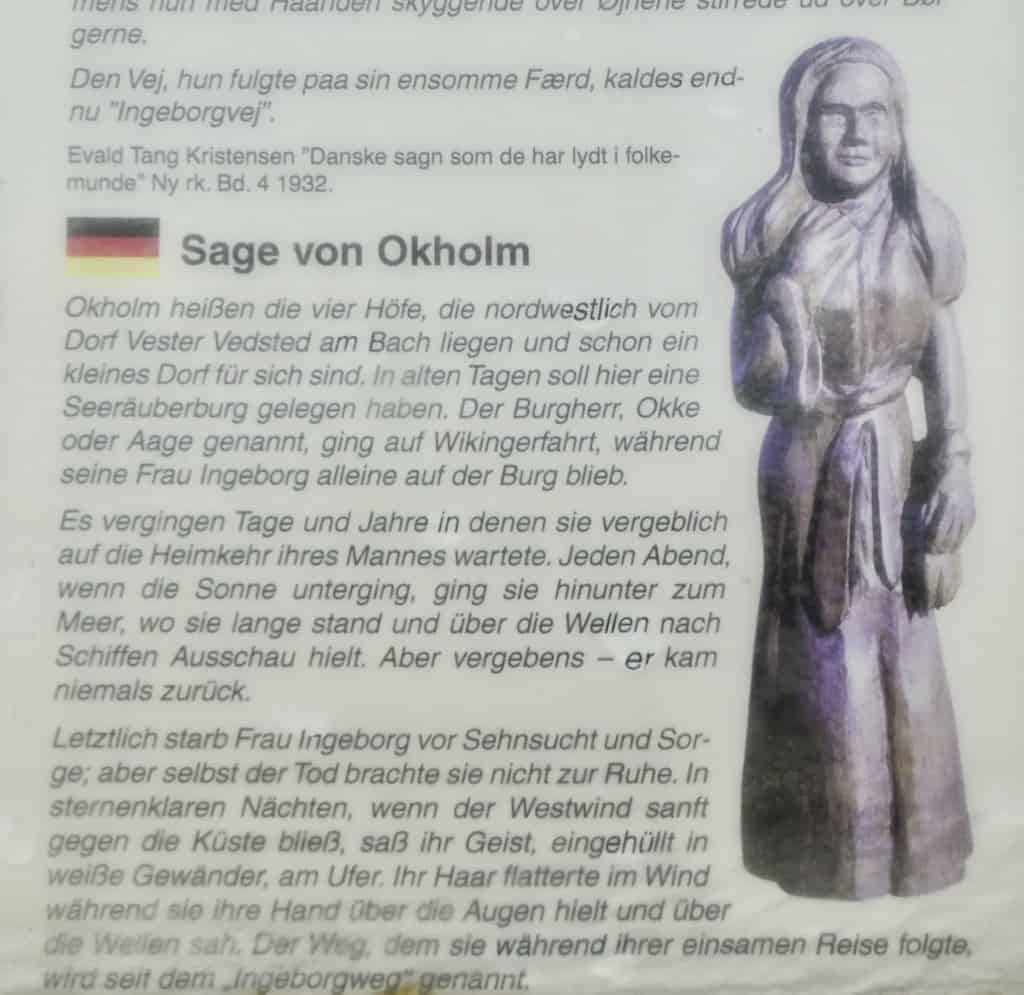 Auf unserem Stellplatz steht eine Säule zur Erinnerung an Ingeborg und der Sage von Okholm.