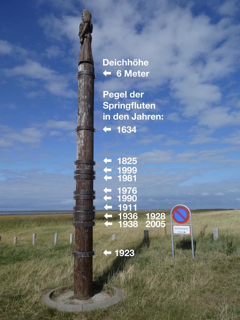 Die Säule dient auch zur Erinnerung an die vielen Springfluten und deren Pegelstände.