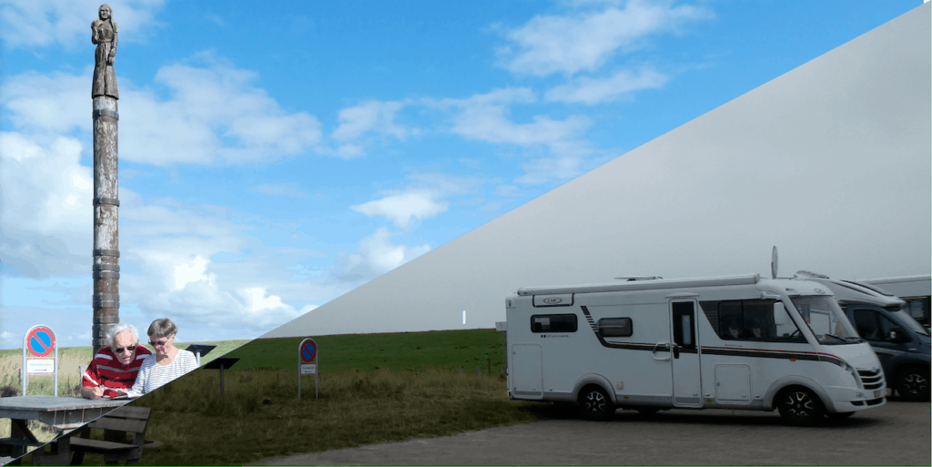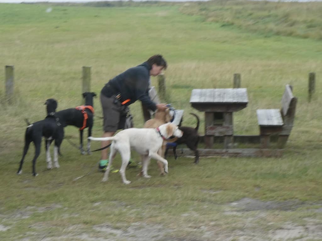 Der Camper gegenüber mit seinen 5 grossen Hunden muss allerdings raus in den Regen, denn die Tiere müssen Gassi geführt werden. Und sie kommen schön nass zurück ins Reisemobil. Toll!