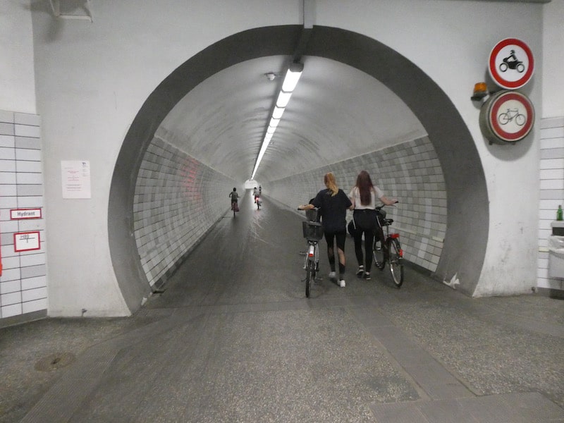 Den Fussgängertunnel unter dem NOK hindurch. Damals gab es noch eine Drehbrücke.