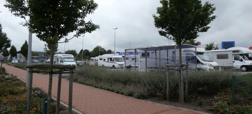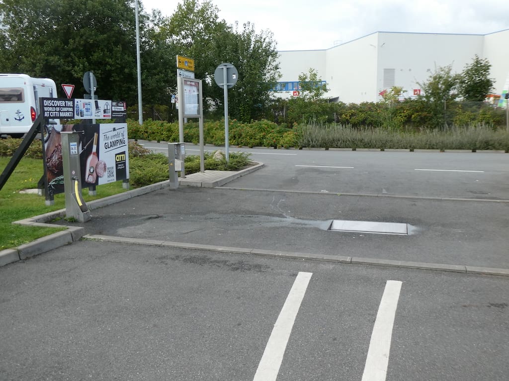 Der Platz bietet auch mindestens 40 Fahrzeugen eine kostenlose Übernachtungsmöglichkeit. Die meisten Durchreisenden von und nach Dänemark kaufen natürlich im Shoppingcenter auch gross ein, so auch wir. Später verkrümeln wir uns in die hinterste Ecke, wo man (Michael) den Strassenlärm nicht so hört.