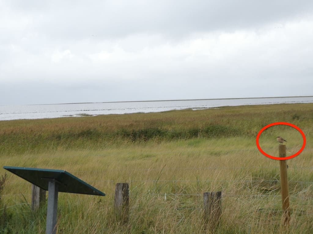 Von Christine und Willi, unseren Nachbarn in der Schweiz und Vogelkundler, wissen wir inzwischen, dass dies ein Steinschmätzer, vermutlich auf der Durchreise in den Süden, ist. Es ist wahrscheinlich ein Weibchen oder Jungvogel.
