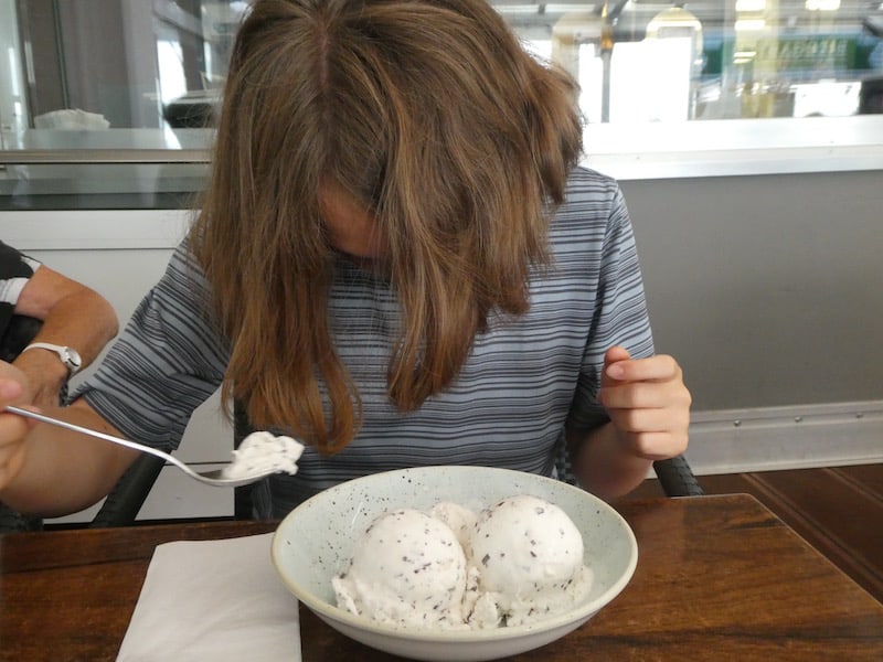Für die drei Kugeln Stracciatella mussten wir allerdings ganz schön kämpfen, denn zuerst wollte man nur gemischtes Eis servieren, weil dies so in der Karte steht. Erst als wir dann ganz auf das Dessert verzichtet hätten, ging es dann doch. Das ist Flexibilität auf der Zerreissprobe!