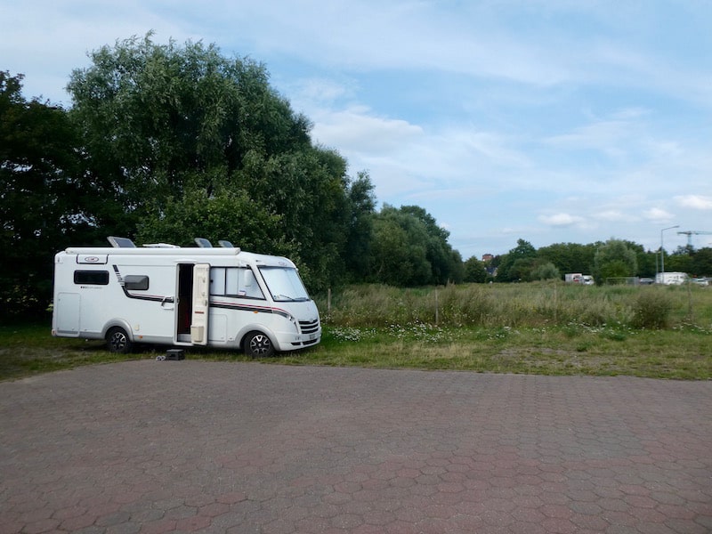Danach installieren wir uns auf dem Stellplatz so in einer Ecke, dass wir die Aussendusche benützen könnten, ohne andere dadurch zu belästigen.