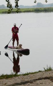 am Abend kam ein Standup-Paddler von seiner Tour zurück.