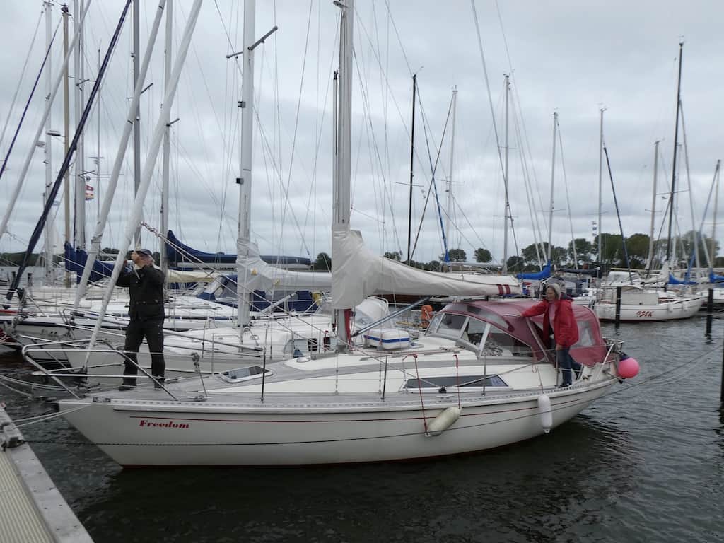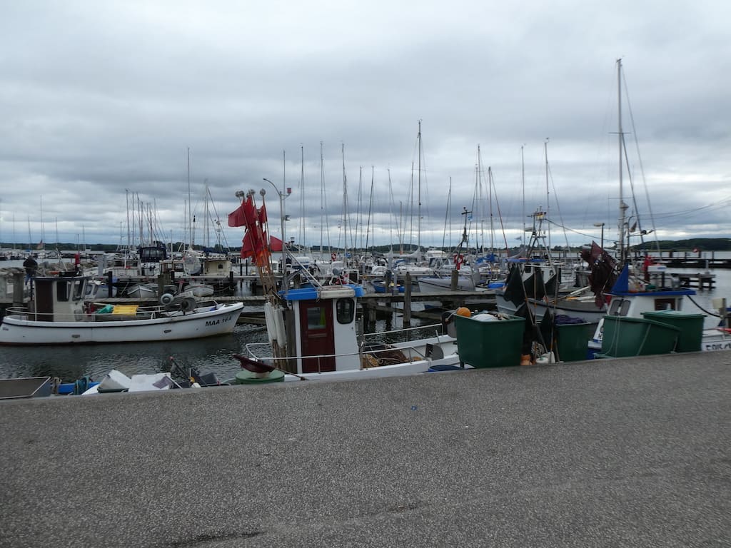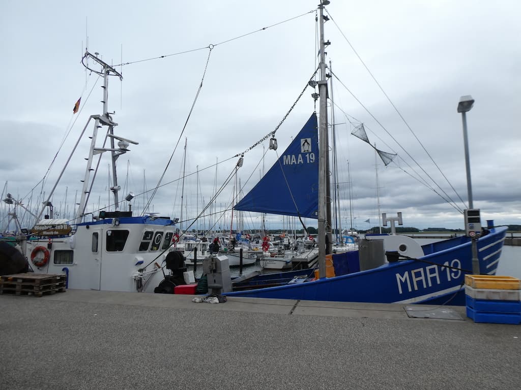 Vorbei am Stadthafen und den Fischerbooten holen wir Waltraud und Dieter im Werfthafen ab.