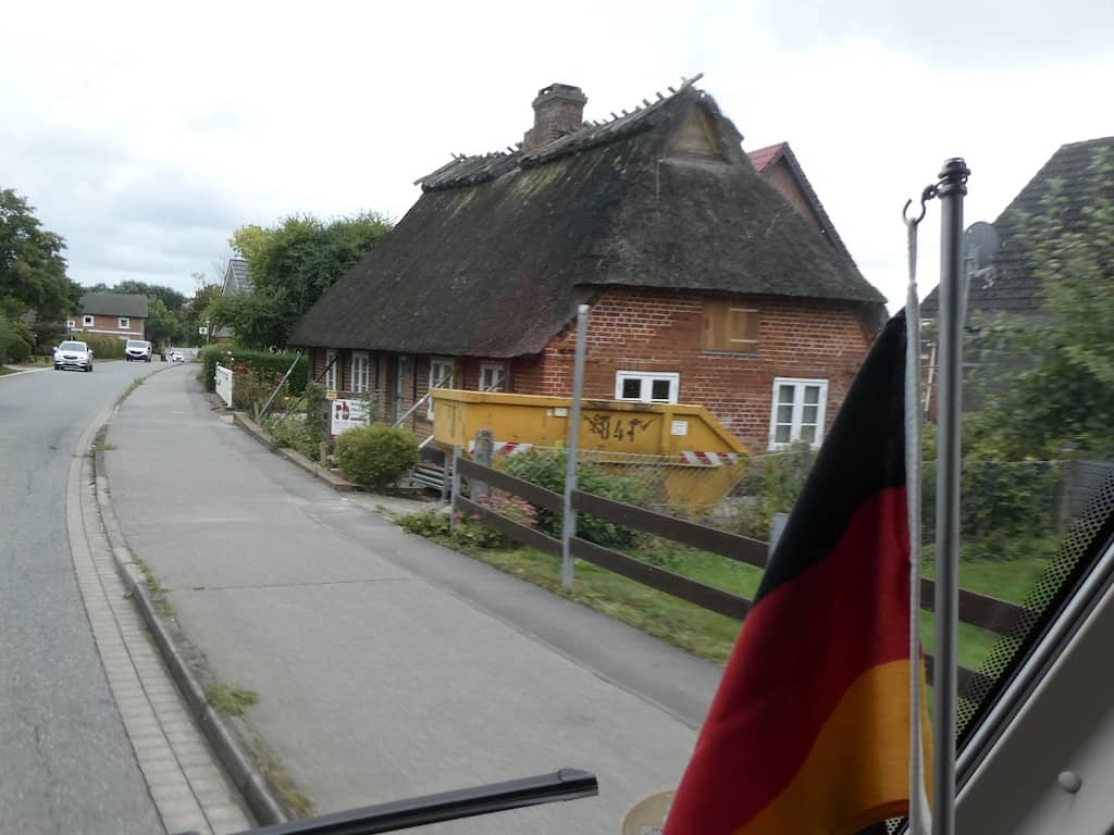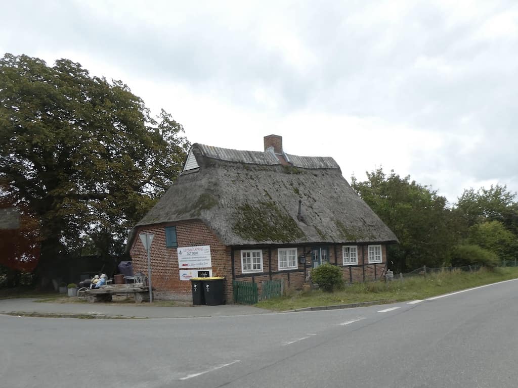 Anschliessend fahren wir nach Maasholm. Hier stehen wieder die schönen reetgedeckten Häuser am Weg.