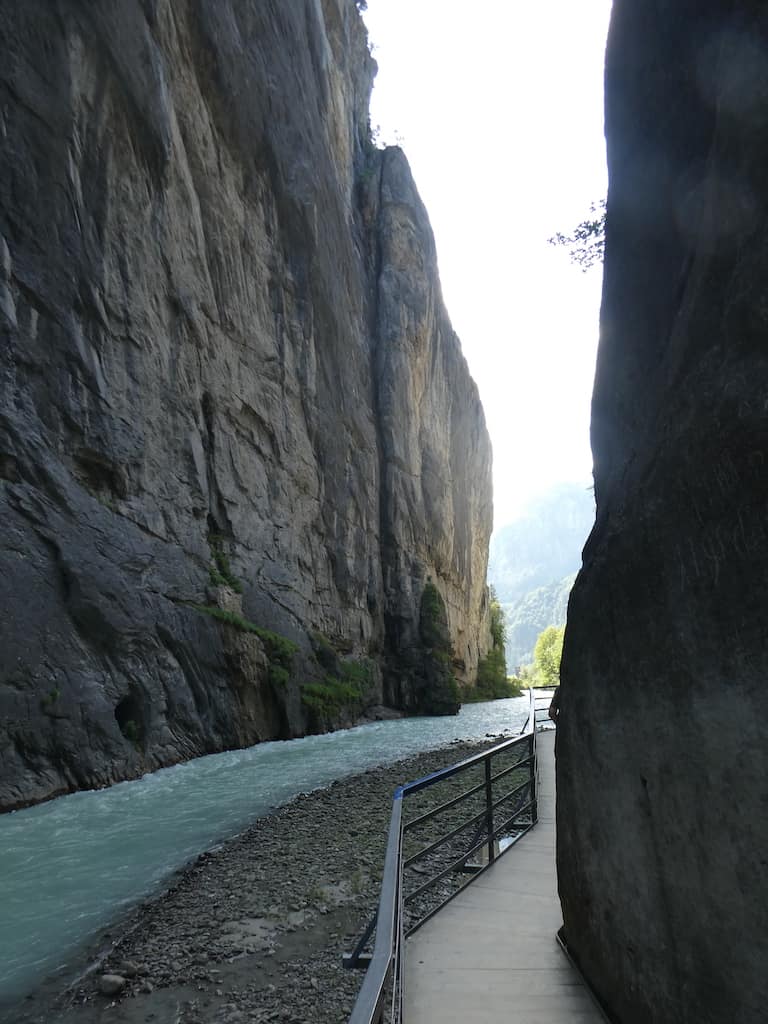 Es ist dies sehr beeindruckend. Einerseits natürlich die Felsenschlucht und die tobenden Wassermassen, andererseits die baulichen Arbeiten und Stege, die eine Besichtigung dieser Schlucht erst möglich machen. Bis zu 180 Meter hoch sind die Felswände.