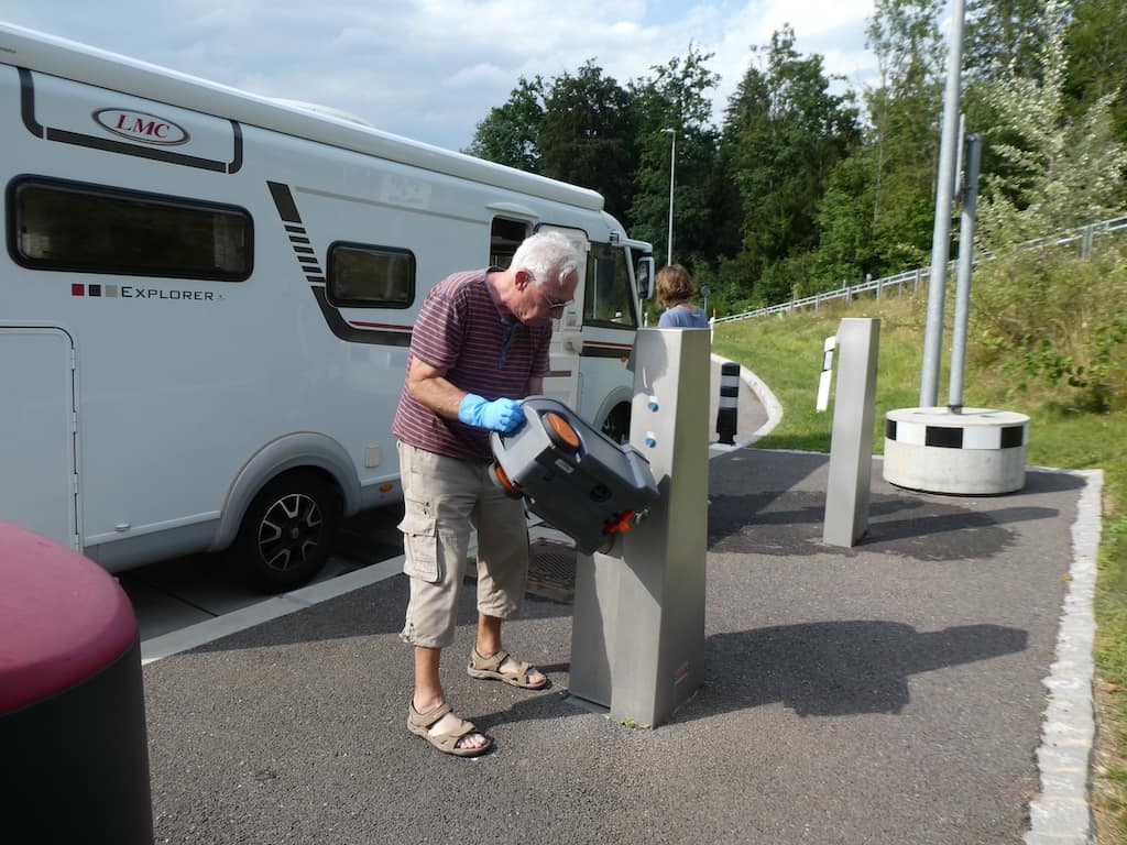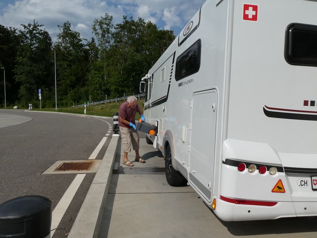 An der Autobahnraststätte Münsingen entleeren wir den Grauwasser-, sowie den Fäkalientank. Eine ganz tolle Entsorgungsstelle.