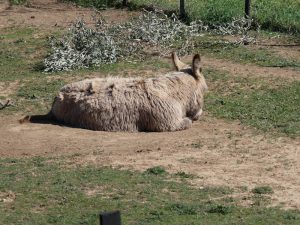 Ein strahlend blauer Himmel. Nicht nur wir, auch dieser Esel geniesst die Sonne.