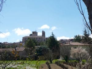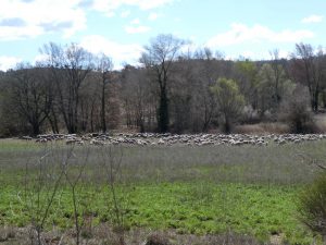 Wir sehen zweimal eine grosse Schafherde. Einmal weideten sie zwischen den Rebstöcken.