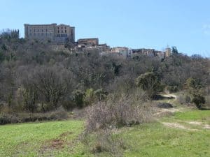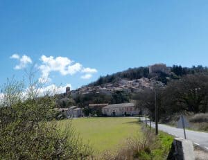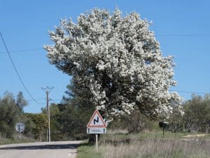 Es geht lange bergab Richtung Mittelmeer. Hier blühen schon Obstbäume.