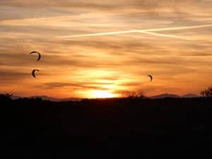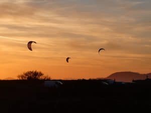 Im Luv toben sich bis zum Sonnenuntergang die Wassersportler aus.