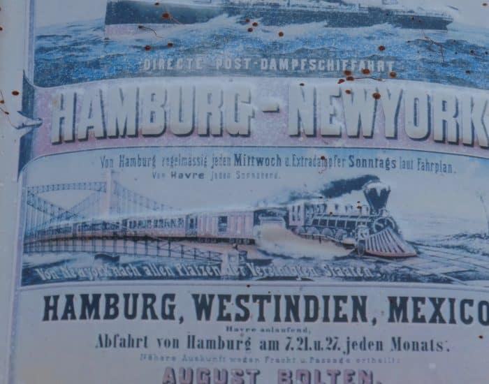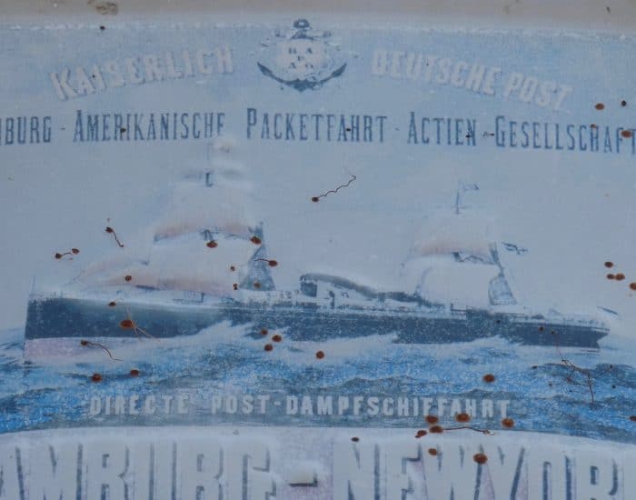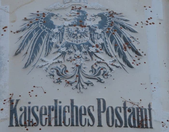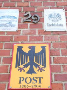 Das Postamt von 1886 – 2004, mit Schildern aus der Kaiserzeit und den kaiserlichen deutschen Übersee-Postrouten.
