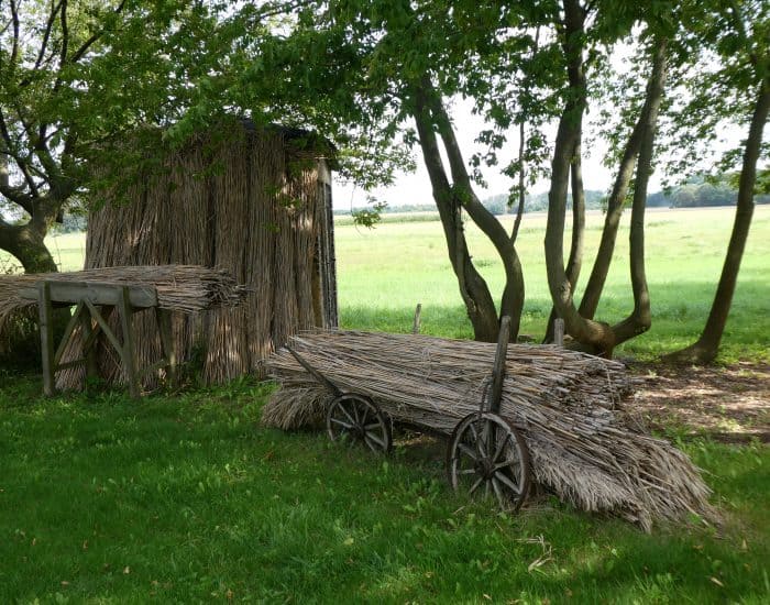 Es ist trocken, die Sonne scheint (meistens). Wir wollen heute die Rohrweberei besuchen. Das ist am anderen Ende von Pritzerbe.
