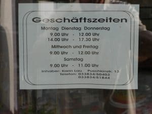 Hier schliesst der Bäcker um 17:30, samstags um 11 Uhr und der Tante Emma-Laden auch.