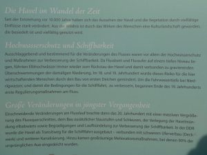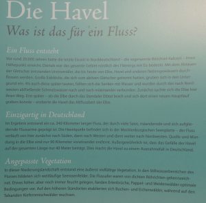 Sehr interessant ist die Information über die Havel. Dieser Fluss ist 340 km lang und doch liegen zwischen Quelle in der Mecklenburgischen Seenplatte und Mündung in die Elbe nur 90 km. Das Gefälle auf der ganzen Länge beträgt nur 40 Meter.