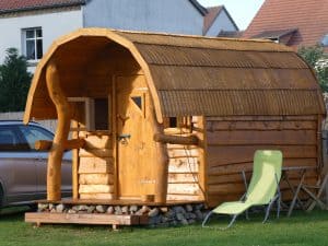 Auf dem Stellplatz steht für Velo-Touristen ein neues Holzhäuschen mit zwei Betten.
