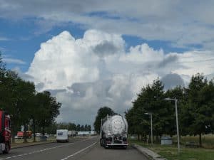 Auf einer Raststätte sehen wir diese gewaltigen Wolken.